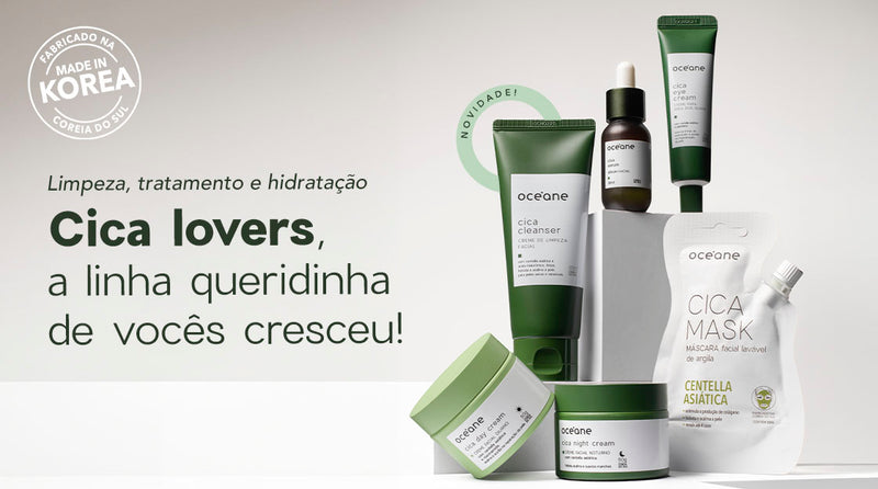 A linha skincare Cica apresenta seis produtos, todos feitos com a famosa Centella Asiática. Trata-se de uma linha multi reparadora e calmante, com produtos para uma rotina de skincare completa, com os cuidados da planta cica. Confira!
