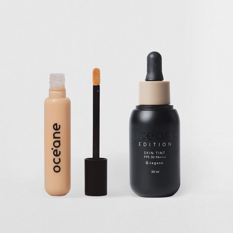 O Kit Base Fluida 110F + Corretivo Líquido Fair Océane Edition é perfeito para uniformizar o tom da pele sem pesar, ideal para cobrir olheiras e linhas finas. Contam com ativos como bisabolol, alantoína e 4 tipos de moléculas de ácido hialurônico, são veganos e cruelty free.
